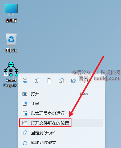 在桌面,右键软件【Amos Graphics】,点击【打开文件所在的位置】。