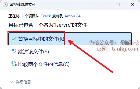 点击【替换目标中的文件】。