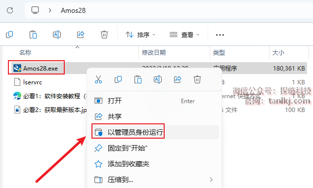 打开解压后的文件夹,右键程序【Amos28】,点击【以管理员身份运行】。