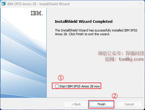 ①去掉勾选【Start IBM SPSS Amos 28now】;
