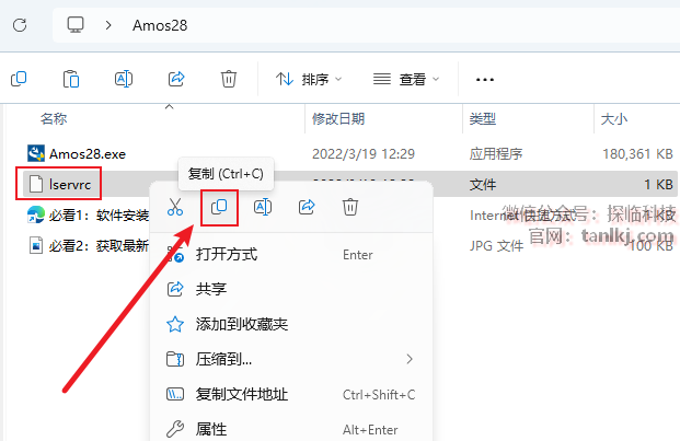 回到之前解压后的文件夹中,复制文件【lservrc】。