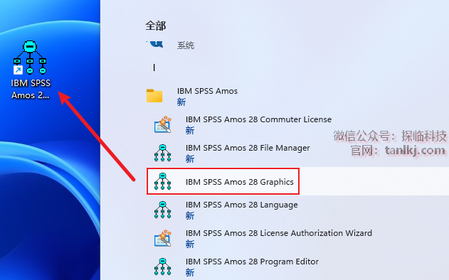 在桌面,双击运行软件【IBM SPSS Amos 28 Graphics】。