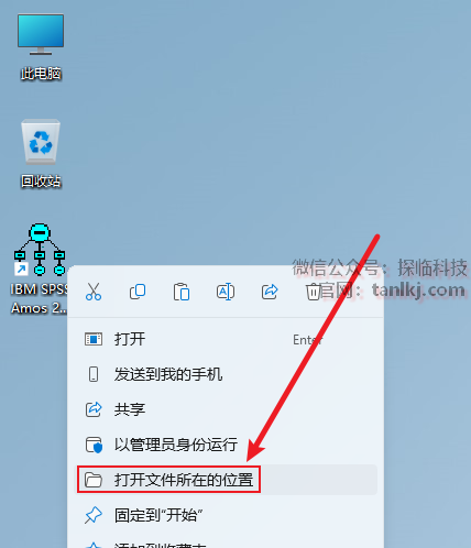 在桌面,右键软件【IBM SPSS Amos 28 Graphics】,点击【打开文件所在的位置】。