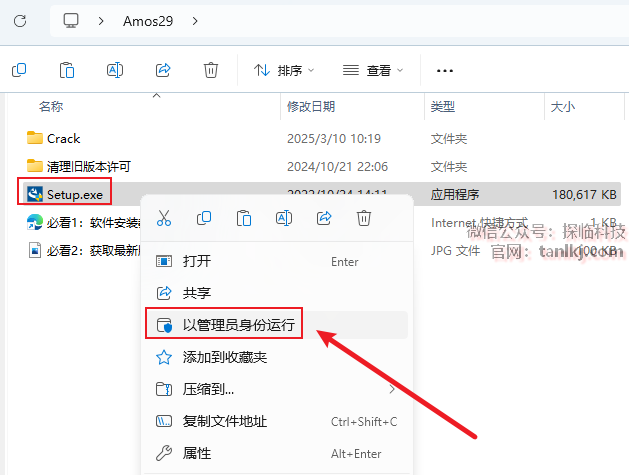 打开解压后的文件夹,右键程序【Setup】,点击【以管理员身份运行】。