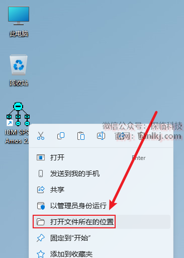 在桌面,右键软件【IBM SPSS Amos 29 Graphics】,点击【打开文件所在的位置】。
