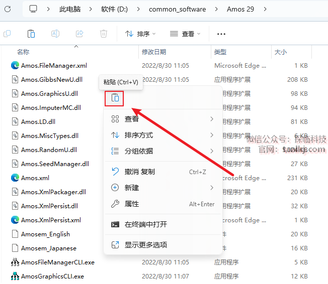 在弹出来的文件夹中,粘贴刚刚复制的文件。