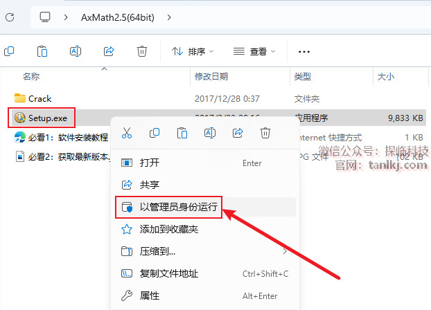 打开解压后的文件夹,右键程序【Setup】,点击【以管理员身份运行】。