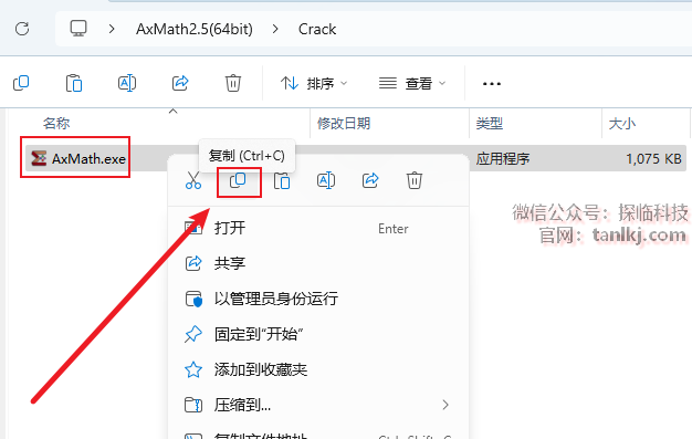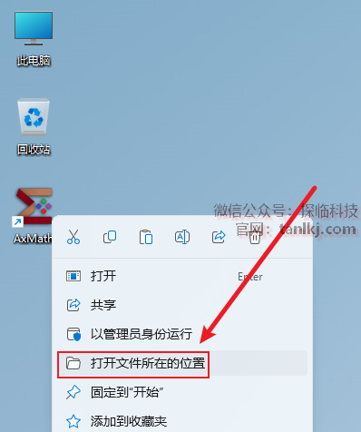 在桌面,右键软件【AxMath】,点击【打开文件所在的位置】。