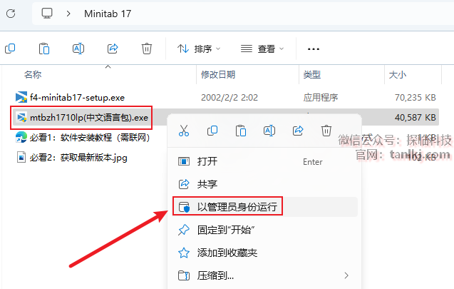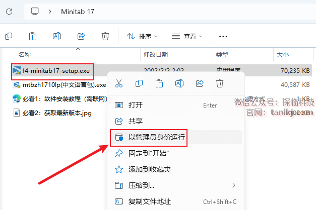 打开解压后的文件夹,右键程序【f4-minitab17-setup】,点击【以管理员身份运行】。