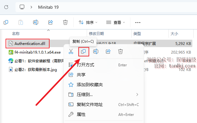 回到之前解压后的文件夹中,复制文件【Authentication】。