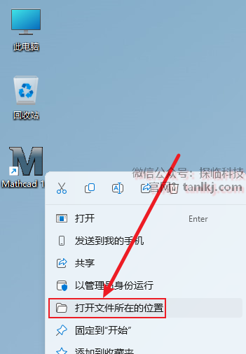 在桌面,右键软件【Mathcad 15】,点击【打开文件所在的位置】。