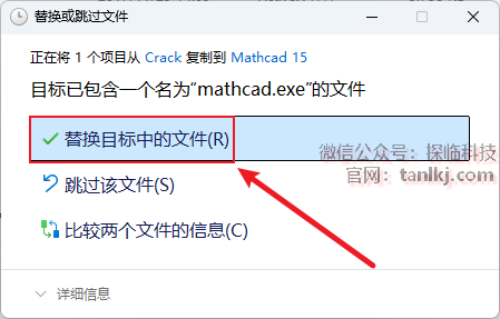 点击【替换目标中的文件】。