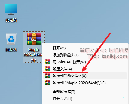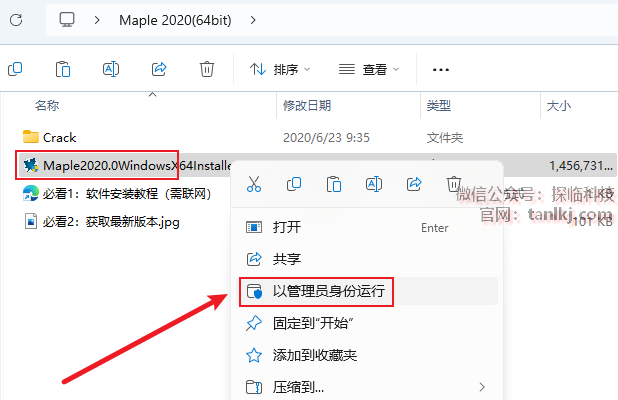 打开解压后的文件夹,右键程序【Maple 2020…】,点击【以管理员身份运行】。