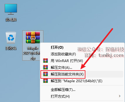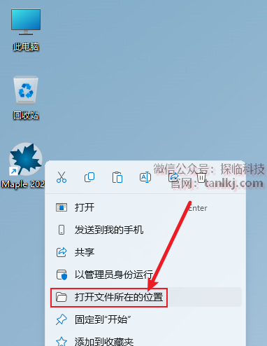 在桌面,右键软件【Maple 2021】,点击【打开文件所在的位置】。