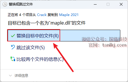 点击【替换目标中的文件】。