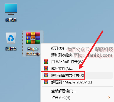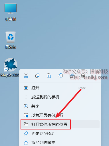 在桌面,右键软件【Maple 2023】,点击【打开文件所在的位置】。