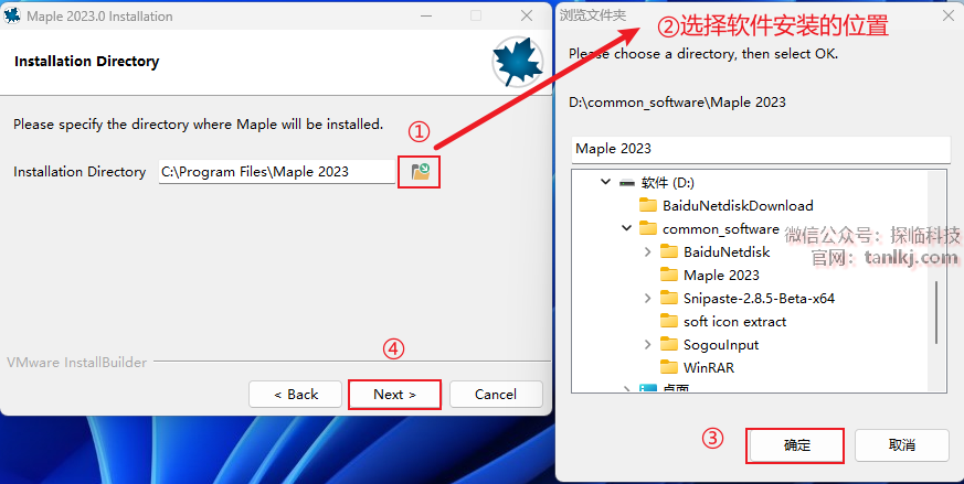 ②选择软件安装的位置(可新建一个文件用于软件安装),安装路径中不能包含任何中文字符;