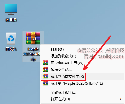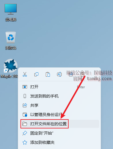 在桌面,右键软件【Maple 2025】,点击【打开文件所在的位置】。