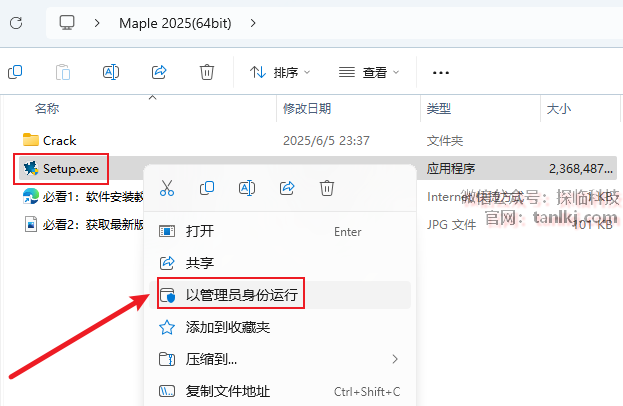 打开解压后的文件夹,右键程序【Setup】,点击【以管理员身份运行】。