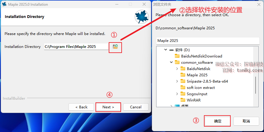 ②选择软件安装的位置(可新建一个文件用于软件安装),安装路径中不能包含任何中文字符;