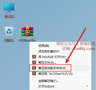 解压下载后的软件包。右键软件包,点击【解压到当前文件夹】(win11系统需先点击【显示更多选项】)。 (未安装解压软件可以点击此处查看:如何安装解压软件?)