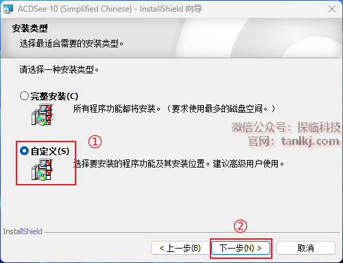 ①勾选【自定义】;