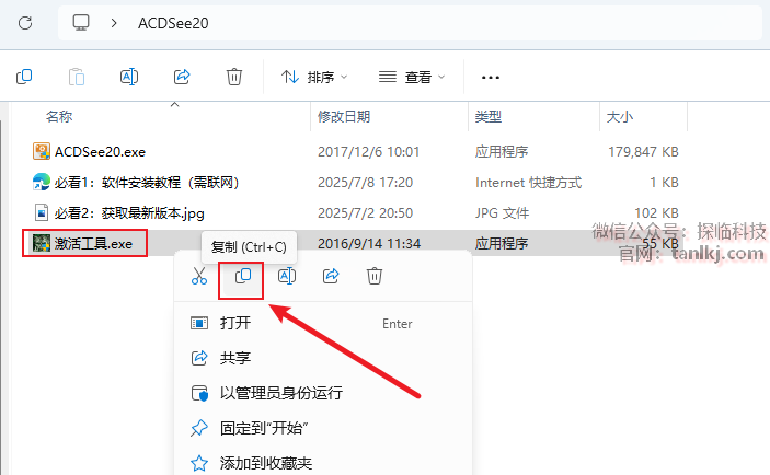 打开之前解压后的文件夹,复制文件【激活工具】。