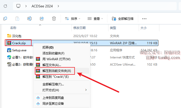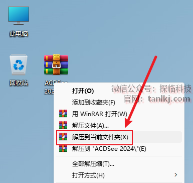 解压下载后的软件包。右键软件包,点击【解压到当前文件夹】(win11系统需先点击【显示更多选项】)。 (未安装解压软件可以点击此处查看:如何安装解压软件?)
