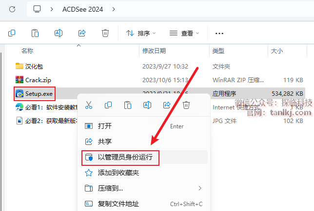 打开解压后的文件夹,右键安装程序【Setup】,点击【以管理员身份运行】。