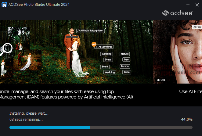 ACDSee 2024旗舰版深度融合人工智能技术,为摄影师及创意工作者提供全流程图像解决方案。其AI智能管理通过人脸识别自动分类命名照片人物,结合AI关键字功能智能扫描添加关键词,大幅简化海量照片整理流程。编辑层面新增一键式AI选区(主题/背景/天空)、AI天空替换(含前景倒影处理)及AI蒙版面板,配合非破坏性图层编辑、混合克隆修复和RAW处理(支持600+相机型号)实现精准编辑。工作流革新包括提速的媒体模式、批量处理工具(重命名/裁剪/水印)、双向元数据迁移及手机无线同步助手,同时强化画笔流量与抖动控制提升细节效率,无需导入即可直接管理硬盘文件,在数字资产管理与专业创作间达成高效平衡。