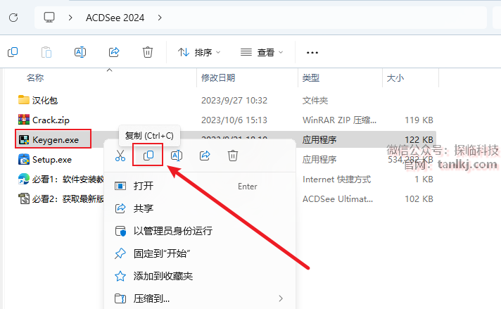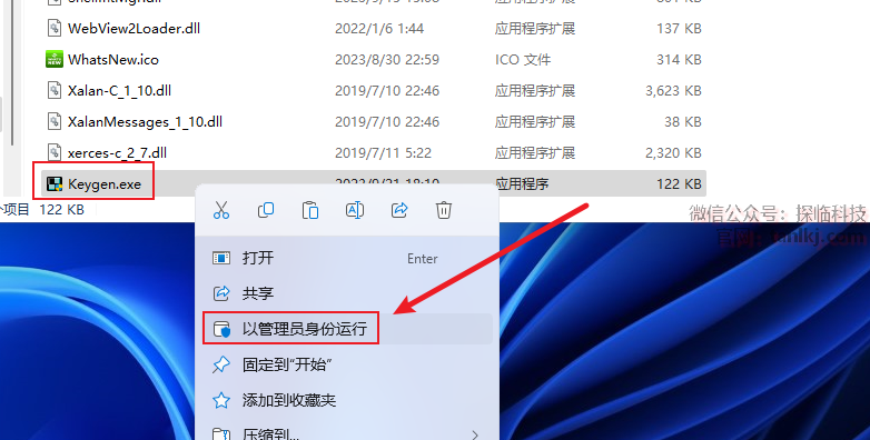 右键刚刚粘贴的文件【Keygen】,点击【以管理员身份运行】。