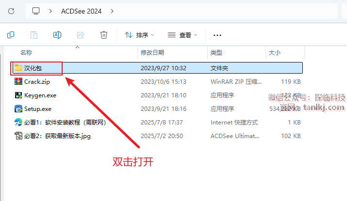 打开之前解压后的文件夹,双击打开文件夹【汉化包】。