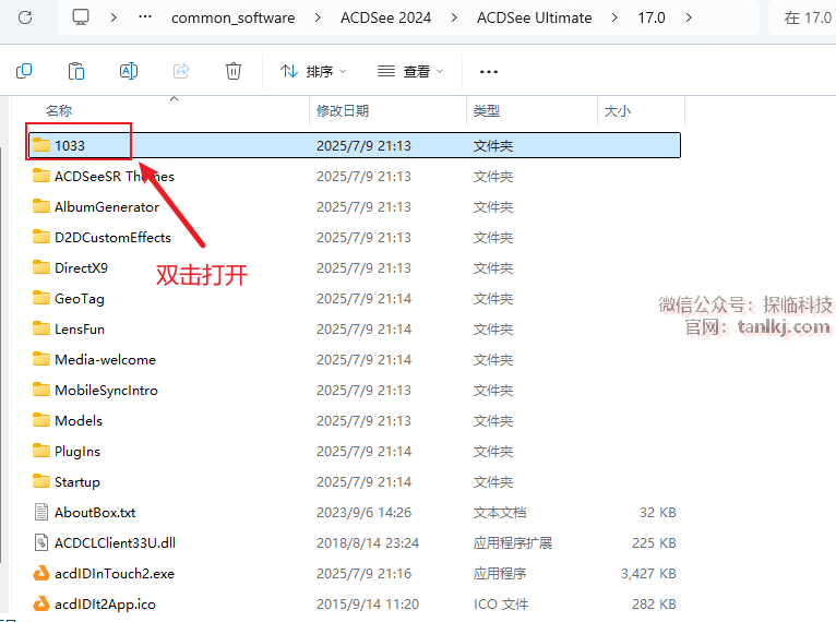 在弹出来的文件夹内,双击打开文件夹【1033】。