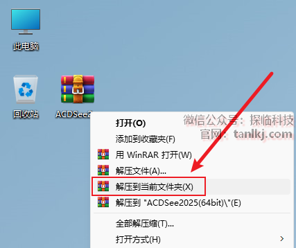 解压下载后的软件包。右键软件包,点击【解压到当前文件夹】(win11系统需先点击【显示更多选项】)。 (未安装解压软件可以点击此处查看:如何安装解压软件?)