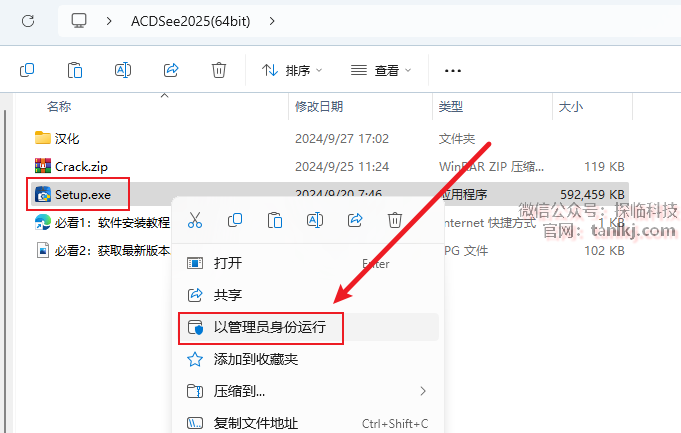 打开解压后的文件夹,右键安装程序【Setup】,点击【以管理员身份运行】。