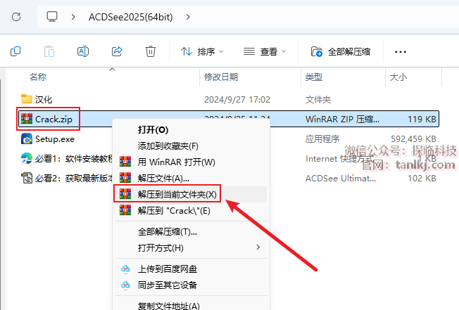 打开之前解压后的文件夹,解压文件【Crack】。