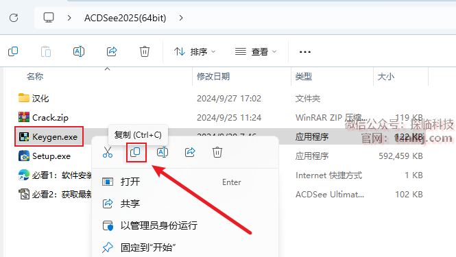 复制刚刚解压出来的文件【Keygen】。