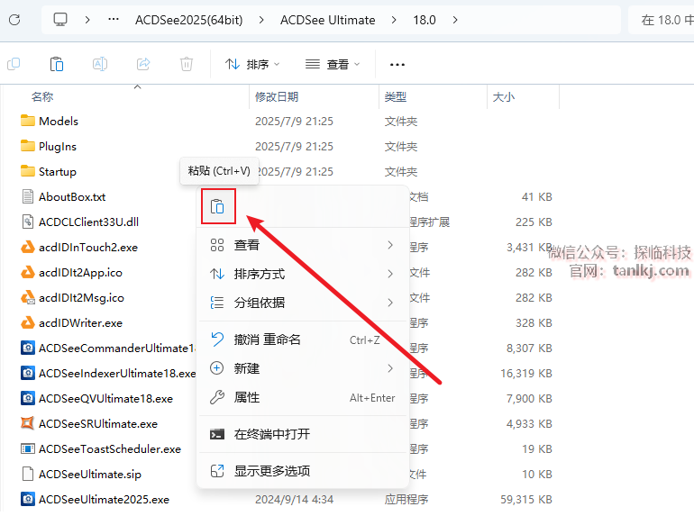 在当前文件夹内,粘贴刚刚复制的文件。