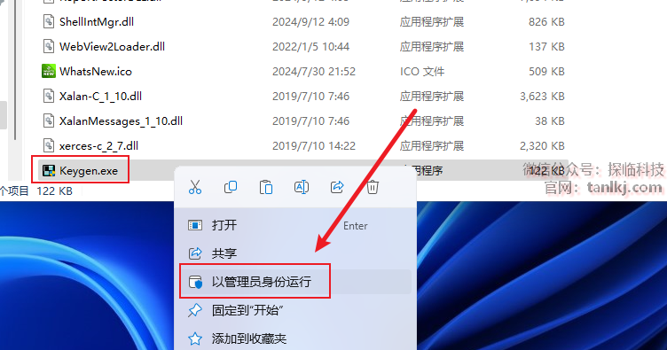 右键刚刚粘贴的文件【Keygen】,点击【以管理员身份运行】。
