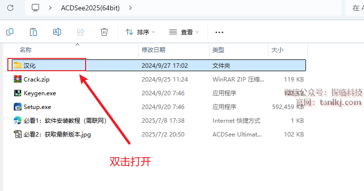 打开之前解压后的文件夹,双击打开文件夹【汉化】。