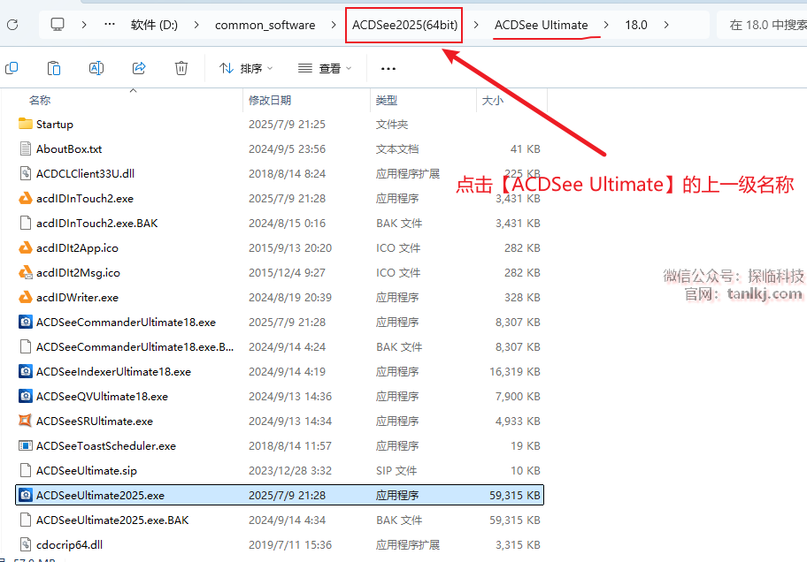 在上方地址栏中,点击【ACDSee Ultimate】的上一级目录。