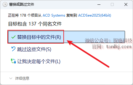 点击【替换目标中的文件】。
