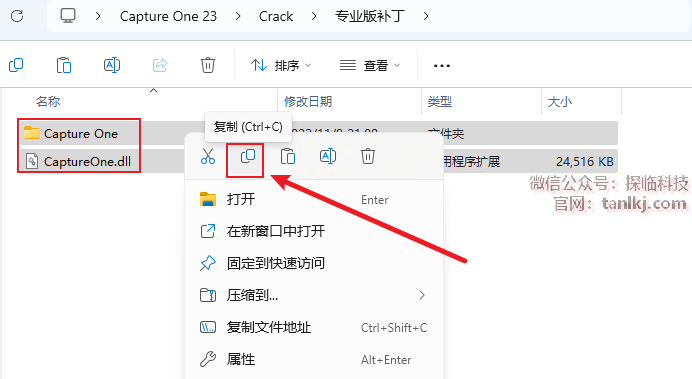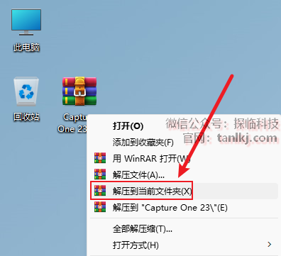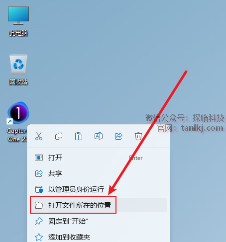 在桌面,右键软件【Capture One 23】,点击【打开文件所在的位置】。