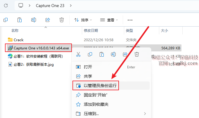 打开解压后的文件夹,右键安装程序【Capture One v16…】,点击【以管理员身份运行】。