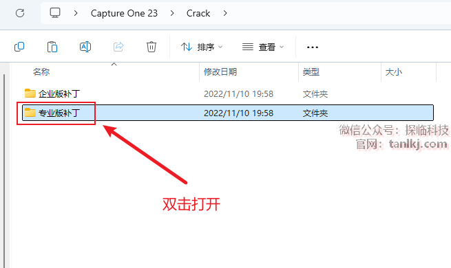 打开之前解压后的文件夹,双击打开文件夹【Crack】,双击打开文件夹【专业版补丁】。