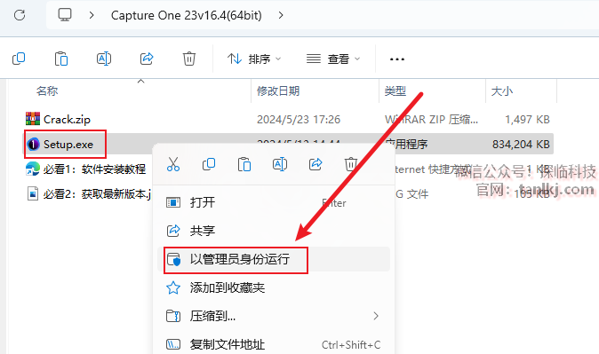 打开解压后的文件夹,右键安装程序【Setup】,点击【以管理员身份运行】。