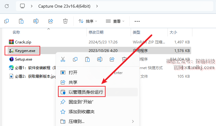 右键解压出来后的文件【Keygen】,点击【以管理员身份运行】。