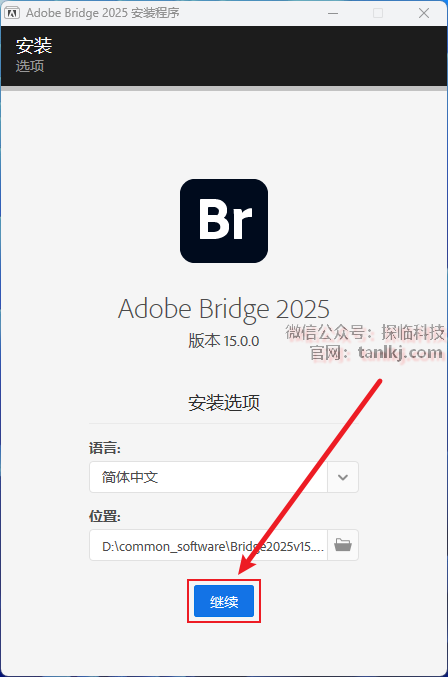 更改软件默认的安装位置,如不需更改,直接点击【继续】即可。