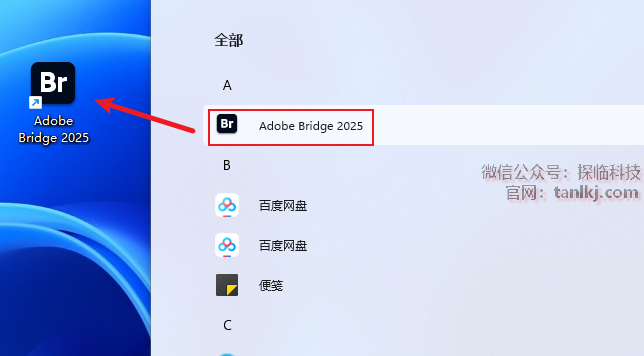找到软件【Adobe Bridge 2025】,将其拖至桌面创建快捷方式。