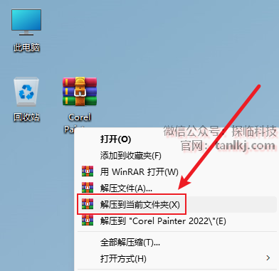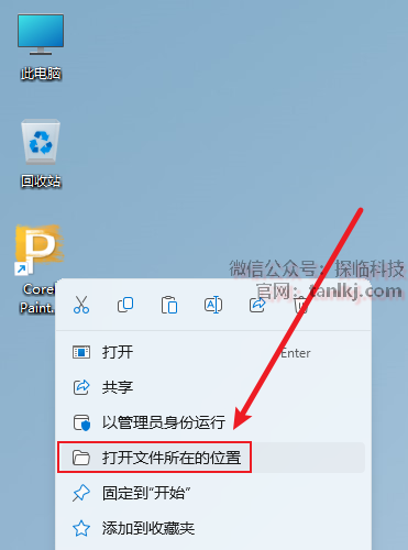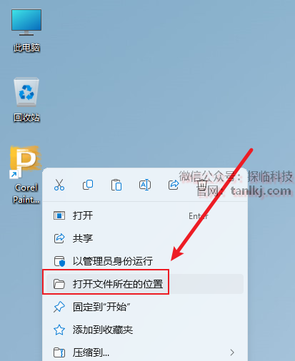 在桌面,右键软件【Corel Painter 2022】,点击【打开文件所在的位置】。
